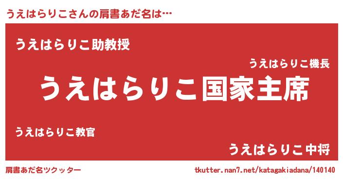 | 欧米人風あだ名 | 『うえはらりこクリステル』 |