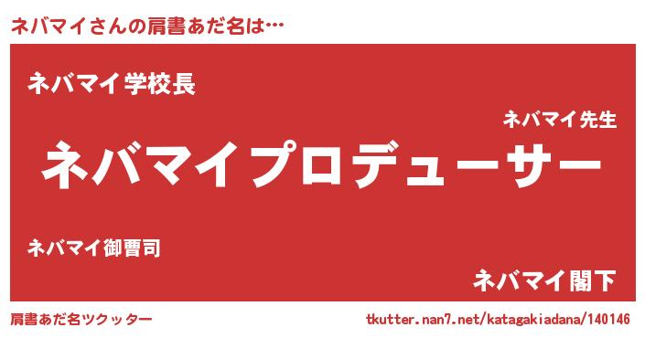 | ヘコむあだ名 | 『ネバマイ(遠い目)』『ネバにゅー』 |