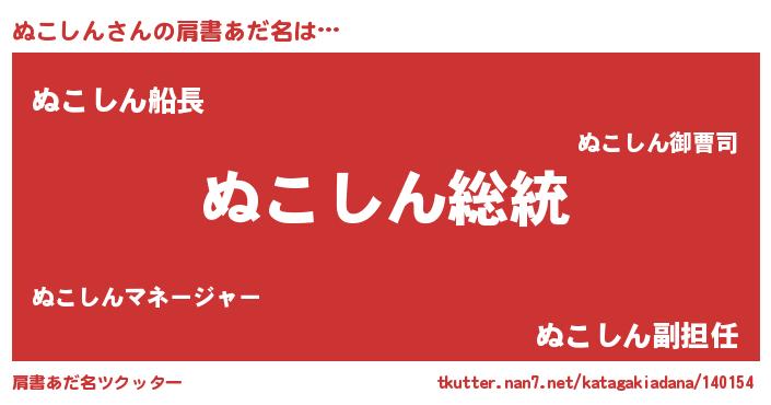 | ヘコむあだ名 | 『ぬこしん(苦笑)』『ぬこにー』 |