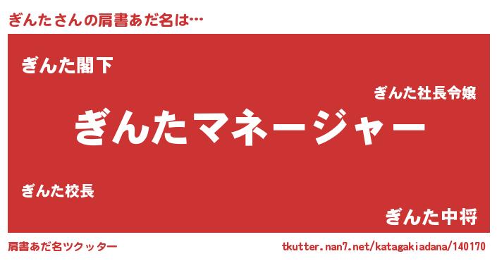 | 意味不明あだ名 | 『自称ぎんた』『ニラ科ぎんた属』 |