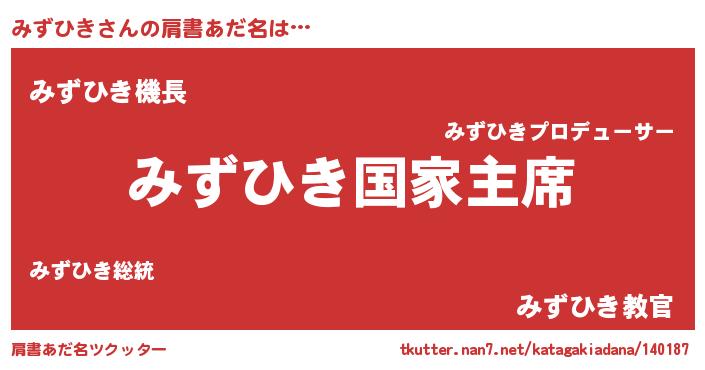 | ヒーロー風カッコイイあだ名 | 『ウルトラみずひきマン』『仮面ミズダー』 |