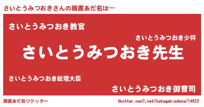 | 意味不明あだ名 | 『永久保存さいとうみつおき』 |
