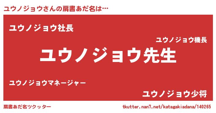 | 男性向けラノベタイトル風あだ名 | 『ユウノジョウという概念が存在しない退屈な世界 』 |