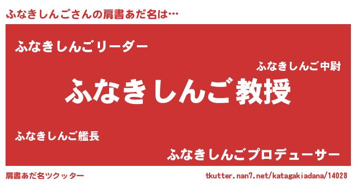 | 男性向けラノベタイトル風あだ名 | 『ノーゲーム・ノーフナキシンゴ』 |