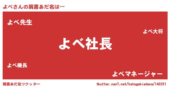 | 男性向けラノベタイトル風あだ名 | 『ヨベアートオンライン』『緋弾のヨベ』 |