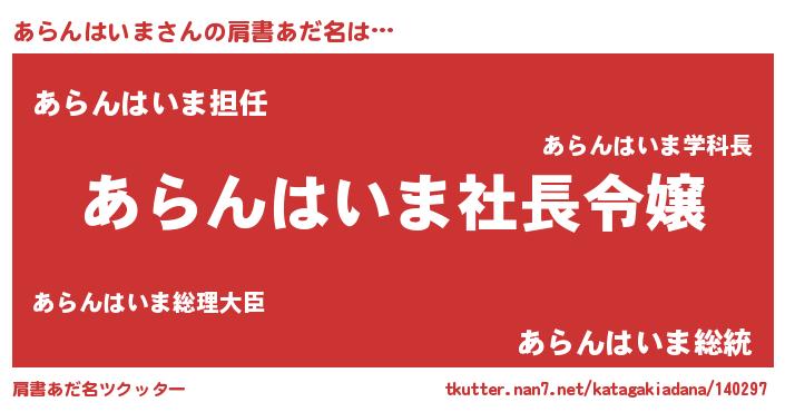 | 胡散臭い通販商品みたいなあだ名 | 『モテモテ間違いなし霊験あらたかなお札…その名も「あらんはいま」』 |