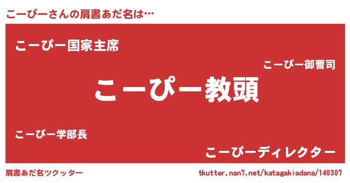 | ヒーロー風カッコイイあだ名 | 『ネオコーピー』『ウルトラこーぴーマン』 |
