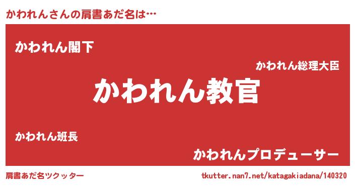 | 男性向けラノベタイトル風あだ名 | 『この素晴らしい世界にかわれんを!』 |