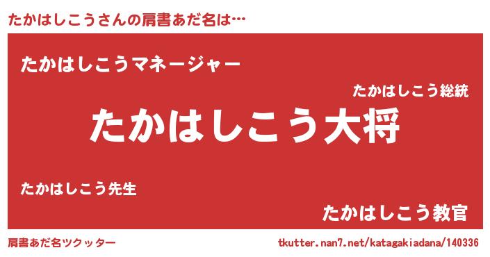 | 男性向けラノベタイトル風あだ名 | 『転生したらたかはしこうだった件』 |