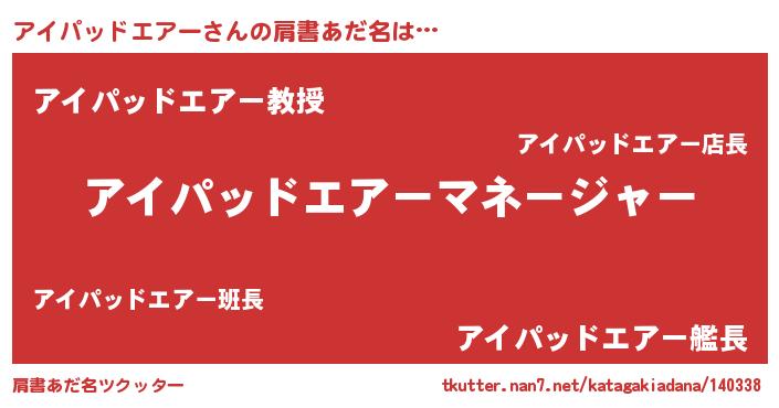 | 男性向けラノベタイトル風あだ名 | 『はたらくアイパッドエアーさま!』 |