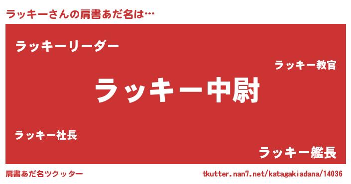 | 男性向けラノベタイトル風あだ名 | 『ラッキー~年齢イコール彼女いない歴の魔法使い~』 |