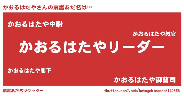 | 女子向けラノベタイトル風あだ名 | 『かおるはたやの卵を拾いまして』 |