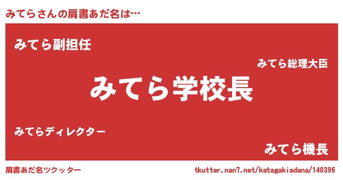 | 女子向けラノベタイトル風あだ名 | 『みてら恋絵巻』『みてらの契約王妃』 |
