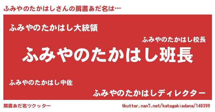 | ポケモン風あだ名 | 『ヒフミヤノタカハシ』『フミヤダネ』 |