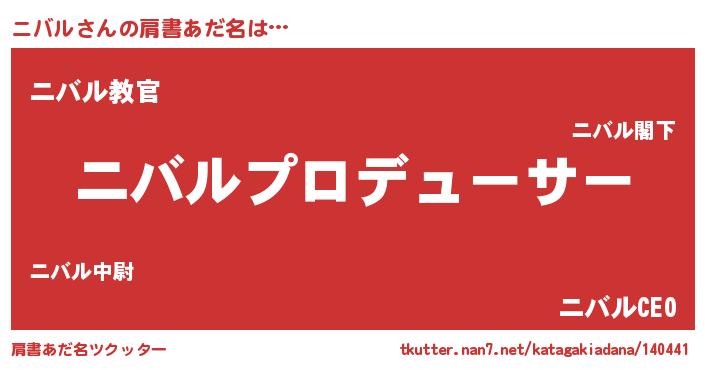 | 男性向けラノベタイトル風あだ名 | 『ニバルに滅ぼされるだけの簡単なお仕事です』 |