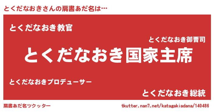 | 男性向けラノベタイトル風あだ名 | 『やはりとくだなおきの青春ラブコメはまちがっている 』 |