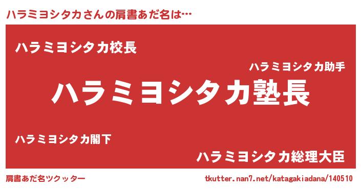 | ポケモン風あだ名 | 『ヒハラミヨシタカ』『ゼニハラ』 |