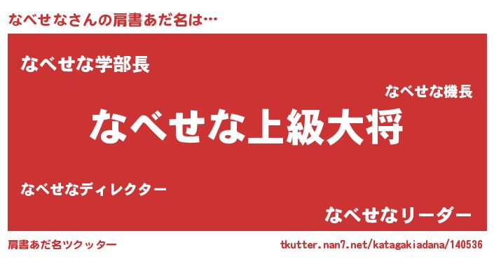 | 意味不明あだ名 | 『つくし科なべせな属』『自称なべせな』 |