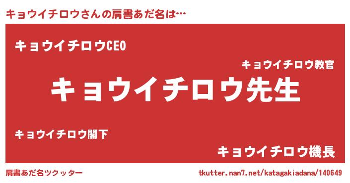 | 男性向けラノベタイトル風あだ名 | 『キョウイチロウという概念が存在しない退屈な世界 』 |