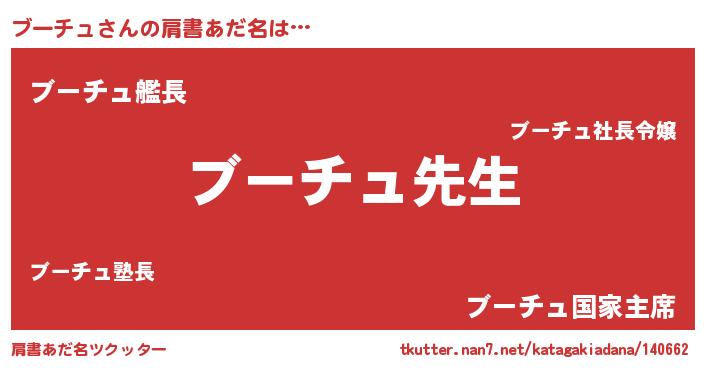 | ヒーロー風カッコイイあだ名 | 『ネオブーチュ』『ウルトラブーチュマン』 |