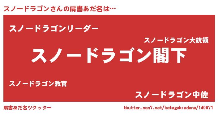 | 女子向けラノベタイトル風あだ名 | 『スノードラゴンなんてお断りですっ。』 |