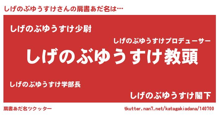 | 男性向けラノベタイトル風あだ名 | 『しげのぶゆうすけという概念が存在しない退屈な世界 』 |