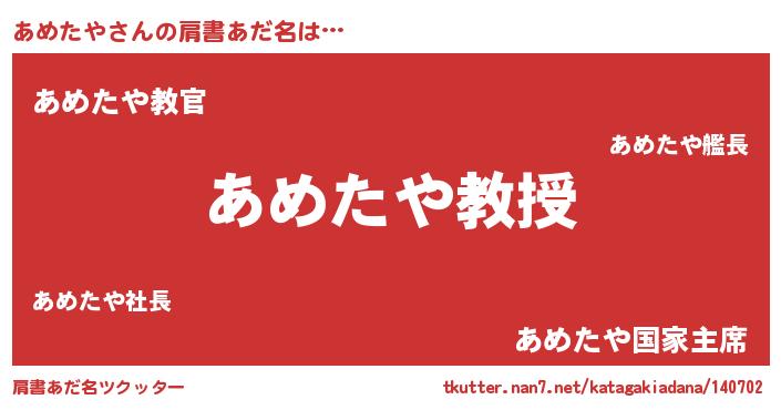 | 欧米人風あだ名 | 『ダニエルあめたや』『マイケルあめたや』 |