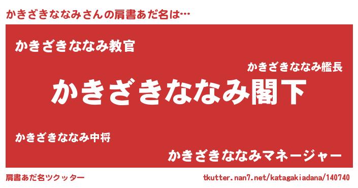 男性向けラノベタイトル風あだ名 | 『Re:かきざきななみから始める異世界生活』 |