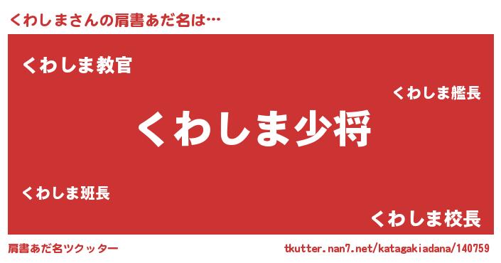 | 男性向けラノベタイトル風あだ名 | 『クワシマスレイヤー』 |