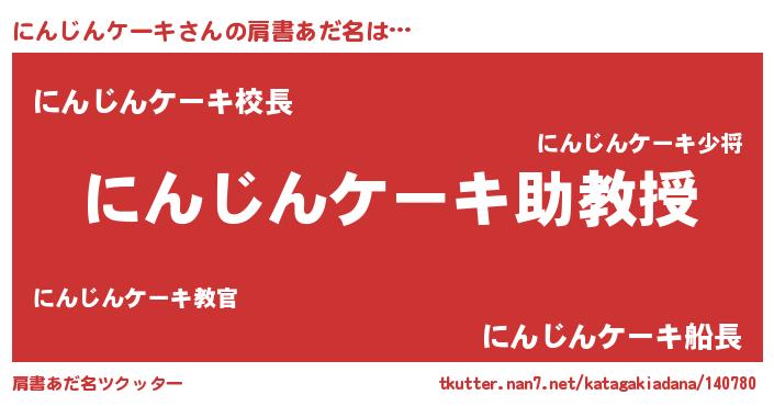 | 男性向けラノベタイトル風あだ名 | 『おまえをオタクにしてやるから、俺をにんじんケーキにしてくれ! 』 |