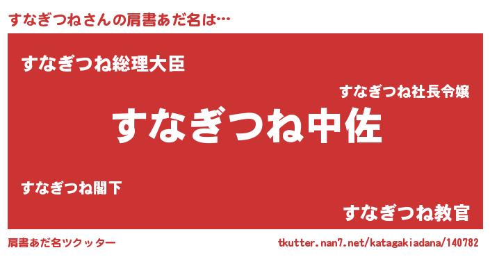 | 男性向けラノベタイトル風あだ名 | 『転生したらすなぎつねだった件』 |