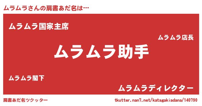 | ポケモン風あだ名 | 『ムックウザ』『ムラムダネ』 |