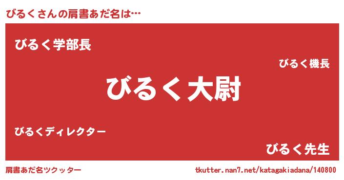 | ヘコむあだ名 | 『びるく(爆)』『酢こんぶ』『びるを』 |