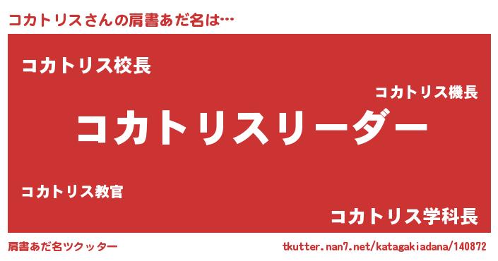 | ヒーロー風カッコイイあだ名 | 『幻影騎士コカ』『ネオコカトリス』 |
