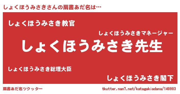 | ヒーロー風カッコイイあだ名 | 『ネオショクホウミサキ』『仮面ショダー』 |