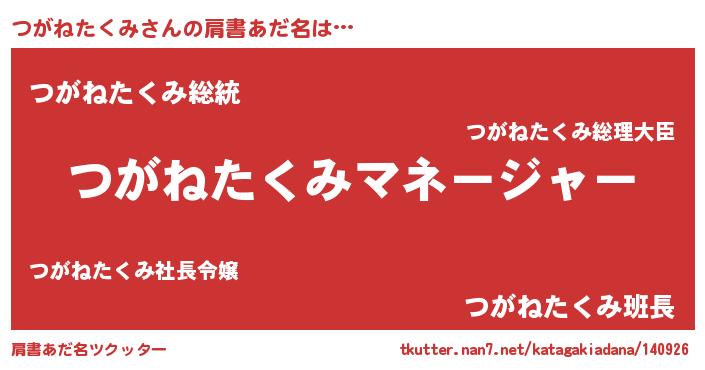 | 意味不明あだ名 | 『自称つがねたくみ』 |