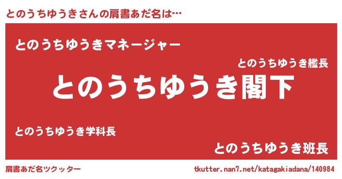 | 男性向けラノベタイトル風あだ名 | 『Re:とのうちゆうきから始める異世界生活』 |
