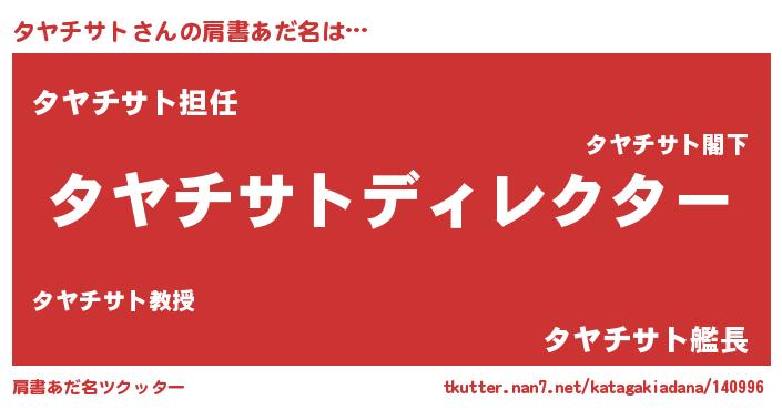 | 意味不明あだ名 | 『永久保存タヤチサト』『自称タヤチサト』 |