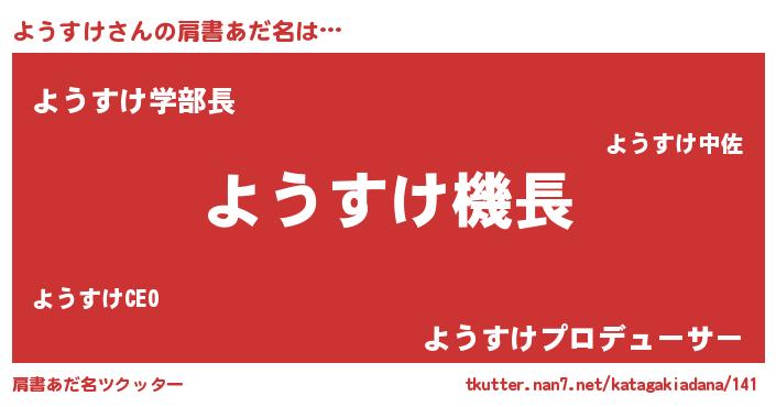 | 欧米人風あだ名 | 『ようすけ・ステッグマイヤー』 |