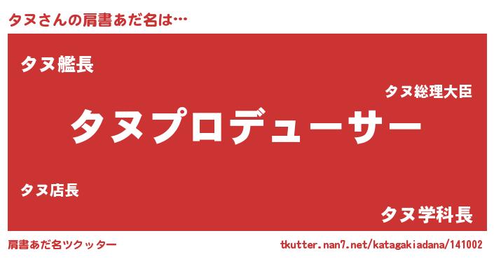 | 男性向けラノベタイトル風あだ名 | 『タヌに滅ぼされるだけの簡単なお仕事です』 |