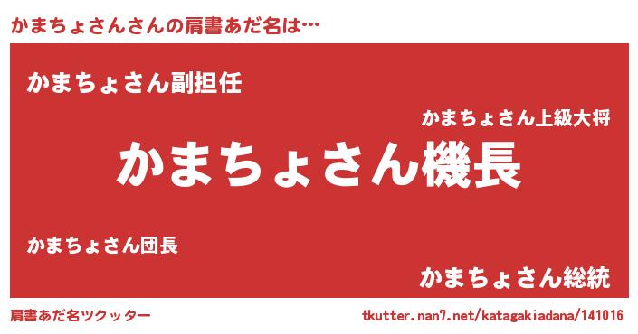 | ヘコむあだ名 | 『かまちょさん(震え声)』『かまぷりん』 |