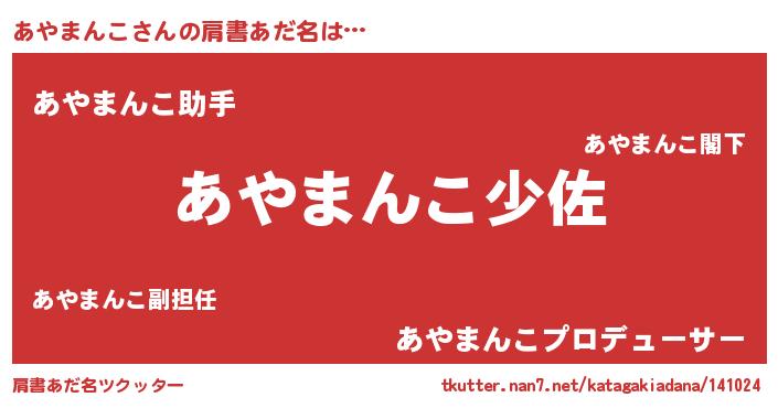| 男性向けラノベタイトル風あだ名 | 『アヤマンコスレイヤー』 |