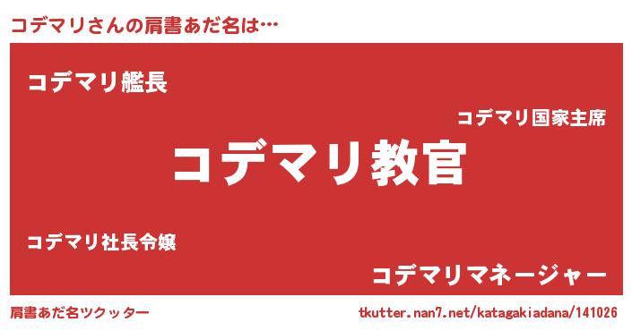 | 男性向けラノベタイトル風あだ名 | 『魔弾の王とコデマリ』『コデマリの憂鬱』 |