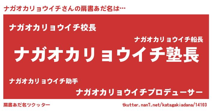 | 男性向けラノベタイトル風あだ名 | 『ナガオカリョウイチの嫁は女の子じゃないと思った?』 |
