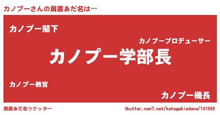 | 女子向けラノベタイトル風あだ名 | 『カノプー恋絵巻』 |