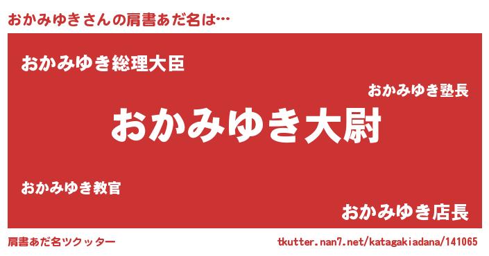 | 男性向けラノベタイトル風あだ名 | 『オカミユキスレイヤー』 |