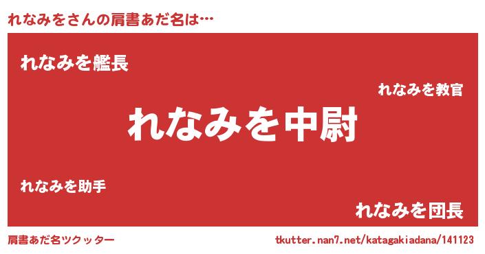 | 男性向けラノベタイトル風あだ名 | 『レナミヲスレイヤー』 |