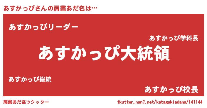 | 欧米人風あだ名 | 『あすかっぴクリステル』 |