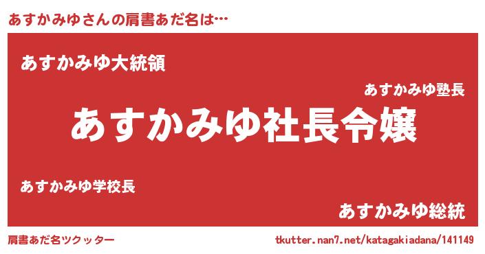 | 男性向けラノベタイトル風あだ名 | 『あすかみゆの憂鬱』 |