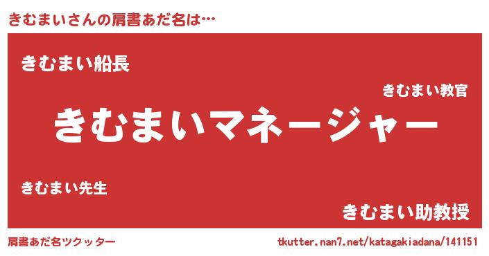 | 男性向けラノベタイトル風あだ名 | 『きむまいに滅ぼされるだけの簡単なお仕事です』 |